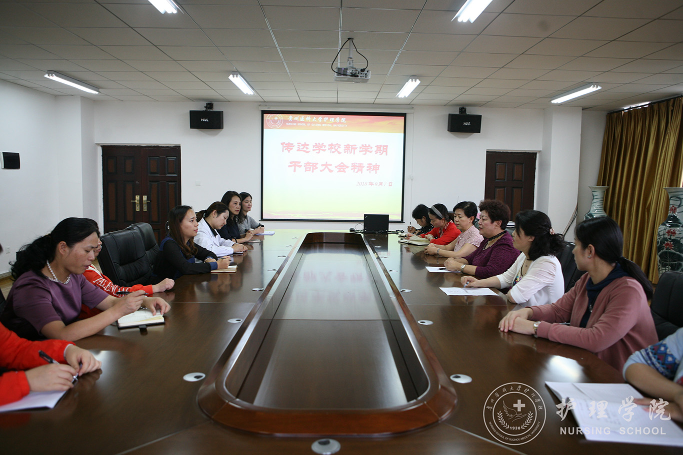 9月7日中午,yl7703永利集团在百川楼会议室召开会议传达公司新学期干部大会精神,yl7703永利集团全体教职工参会,会议由yl7703永利集团经理贾秀英主持。