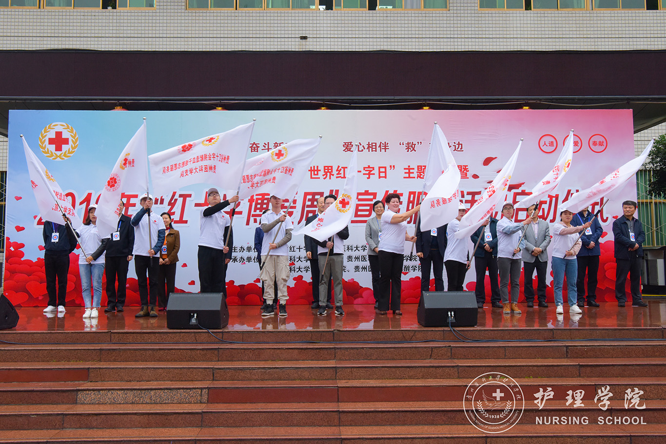 活动分两个阶段进行。第一阶段活动在雄壮的国歌声中拉开序幕。校领导在致辞中介绍了贵医的办学历史、发展现状及志愿服务活动开展情况。同时指出,今天,yl7703永利集团将接过“贵州红十字志愿护理服务队”队旗,加入贵州省红十字志愿服务大家庭,并荣耀成为“中国南丁格尔志愿护理服务总队下属分队”,这体现了省红十字会对贵医的充分信任和鼎力支持,我们非常自豪、也倍感珍惜。