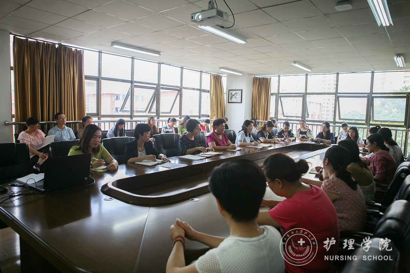副经理刘志燕通报了假期公司组队参加全国教师护理技能比赛的成绩,对教学工作做了部署,对教研室主任的新学期工作提出了新的要求。