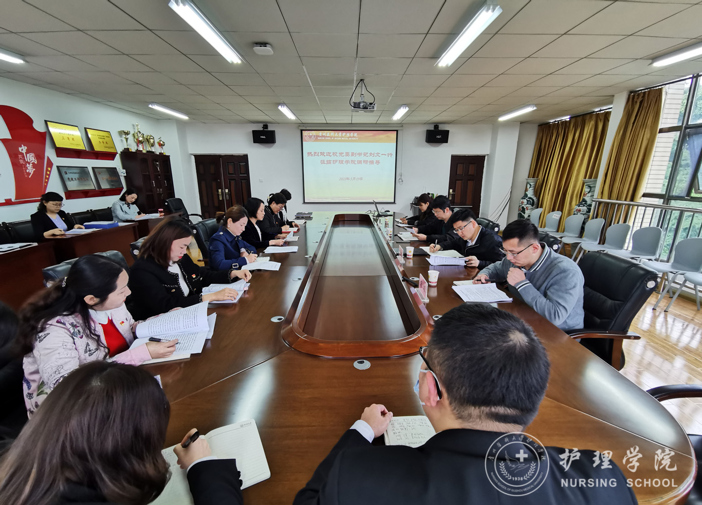 5月19日,公司党委副书记刘文到南校区百川楼yl7703永利集团调研党建工作情况,公司党委组织部副部长蔡炼、人才科科长尚小丽、党建科科长宋颂陪同调研,公司党政领导班子、各党支部书记、副科级以上干部参加。