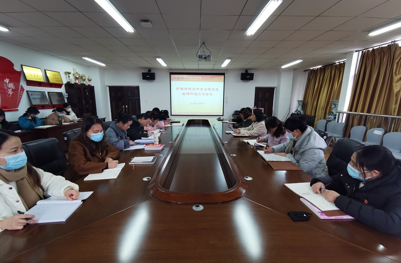 12月7日,yl7703永利集团在南校区百川楼会议室召开安全稳定及疫情防控工作会议,传达相关文件和会议精神并部署工作,会议由公司党委书记杨英主持,全院教职工参加。