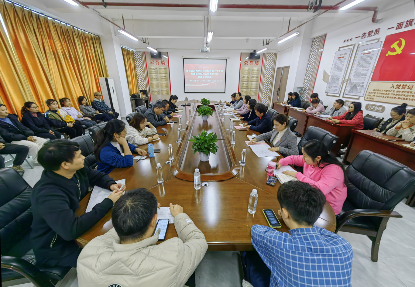 公司党委书记杨英致欢迎辞,指出本次党建联建是落实立德树人、推动学科交叉融合的创新实践,强调深化党建与教学科研融合,凝聚协同育人合力,支撑高素质医学人才培养。活动以理论学习开篇,全体党员集体学习《习近平谈治国理政》第五卷相关章节,为后续交流筑牢思想基础。
