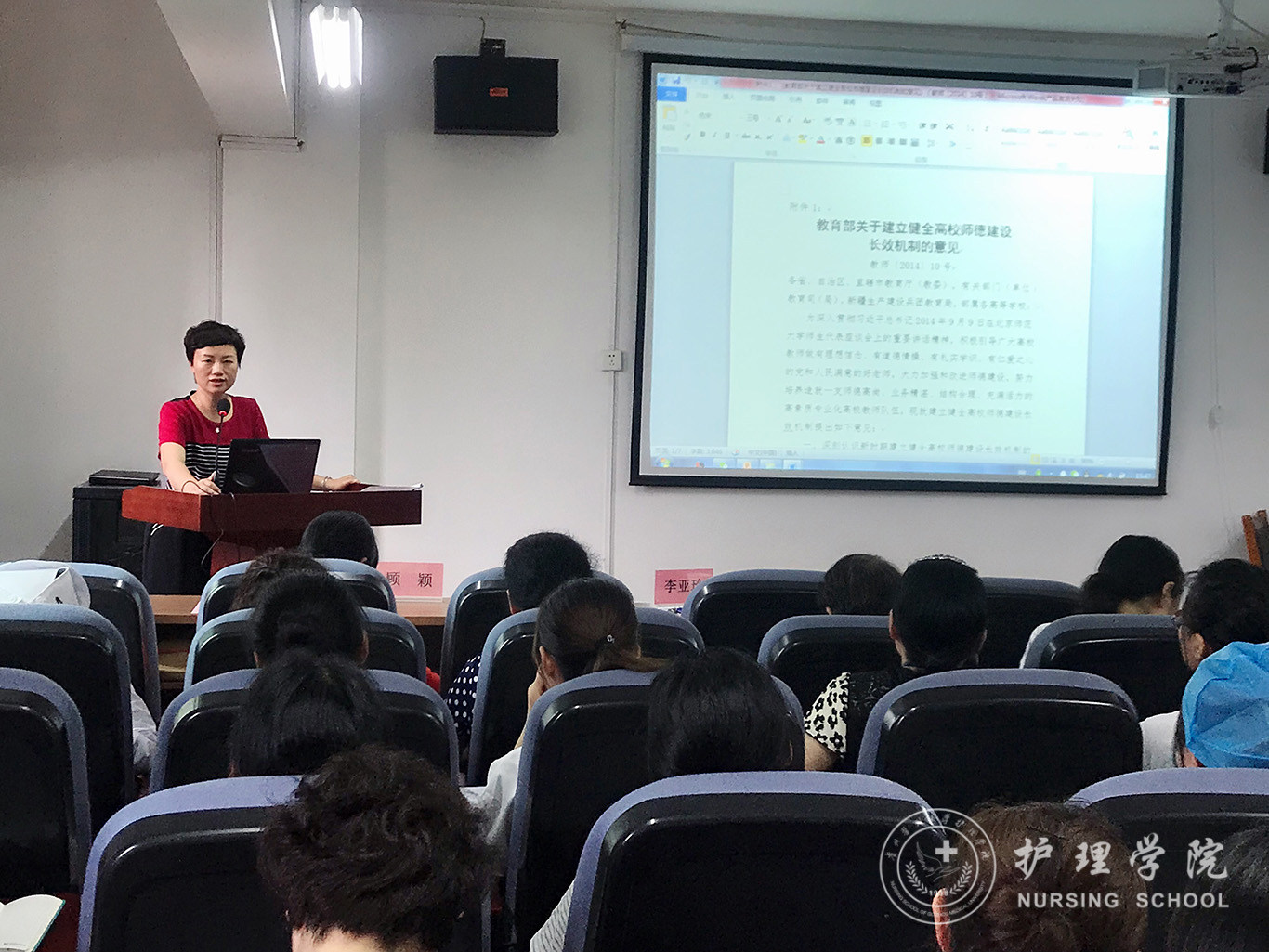 接下来,王秀红和附属医院护理部副主任顾颖进行了师德师风教育培训,组织学习了《教育部关于全面落实研究生导师立德树人职责的意见》等相关文件。