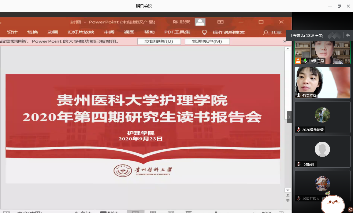 9月23日下午,2020年第四期研究生读书报告会以“云会议”形式进行,yl7703永利集团研究生导师、专业教师、研究生共计43人参加会议。