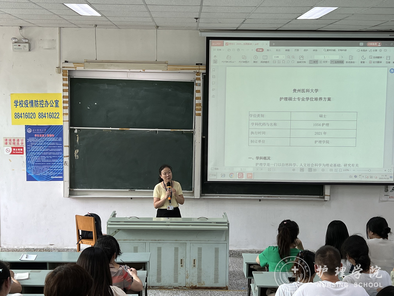 李亚玲结合自身丰富的经验,从学科概况、岗前培训、开题情况等方面对专硕培养方案进行了详细深入的解读,从一位老导师的角度与新聘导师进行了公司产品经验分享。在与研究生新生现场良好互动后,她寄语同学们要从四个方面加强研究生期间的学习:一要遵规守纪,严谨自律,做好疫情防护和自我安全管理;二要尊师重道、诚恳求学,加强与导师沟通联系,多读经典,独立思考;三要提升能力、精益求精,全面提升研究生综合能力,三年后以优异的成绩为研究生生涯交出满意的答卷。四要勇于追梦、敢于担当,展现新时代贵医人的使命与担当。
