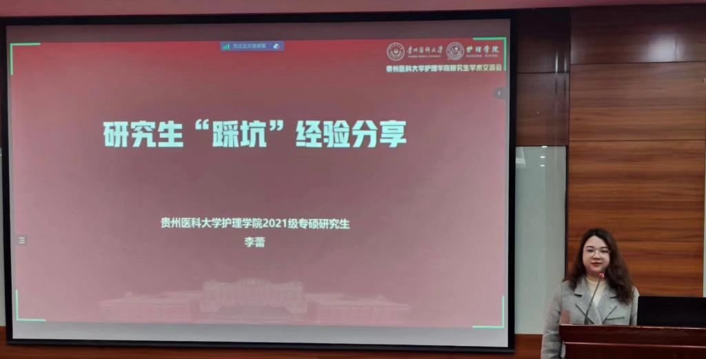 2021级护理专硕研究生李蕾以“研究生“踩坑”经验分享”为主题,结合自身成长过程为大家介绍在研究生阶段的课程学习、临床实践及学术科研等方面的“踩坑”、“避雷”经验,同时,也为研究生同学们提出了有关今后自身发展及学术科研规划的宝贵建议。