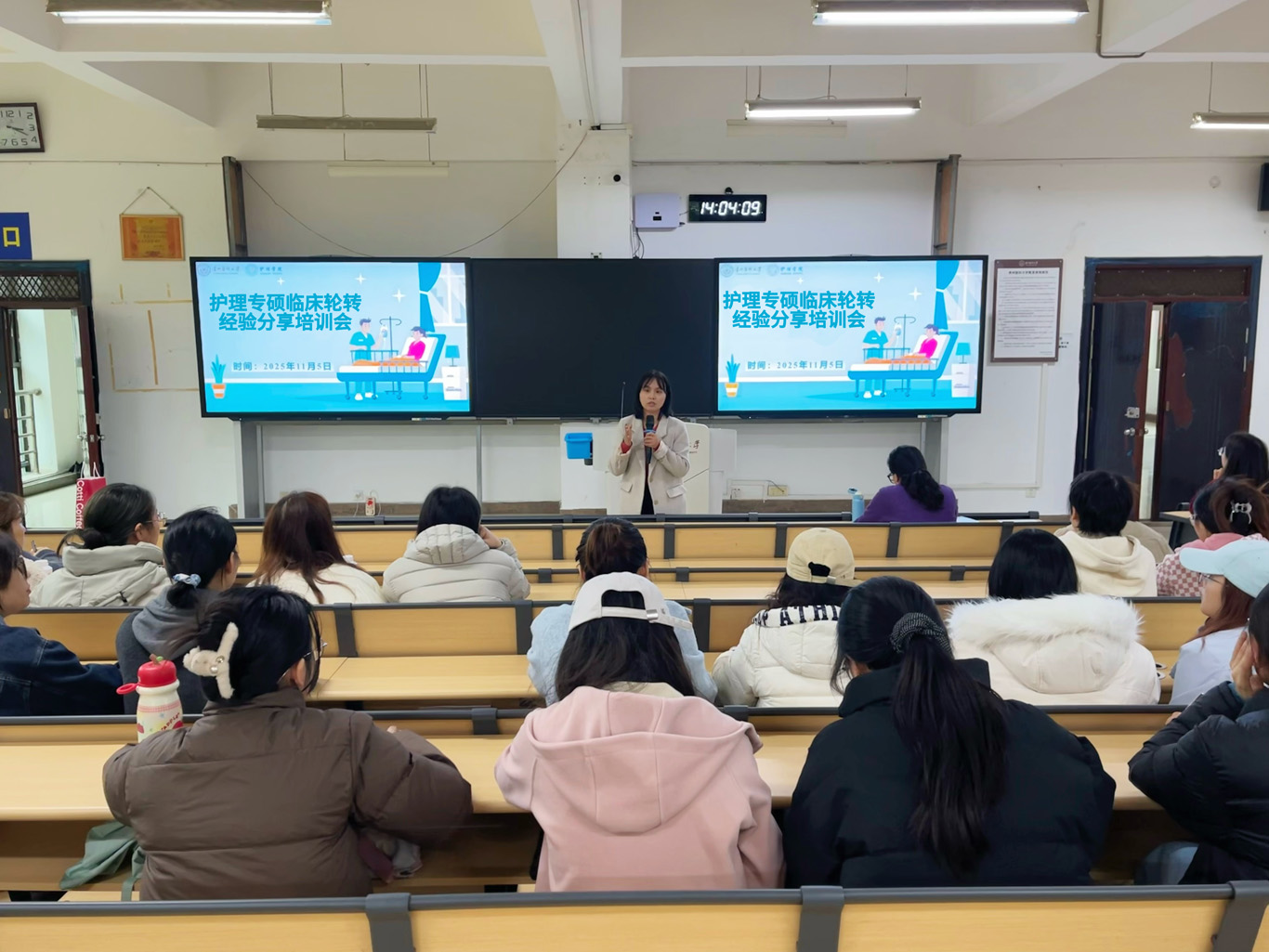 11月5日,公司于北京路校区基础2301教室召开护理专硕临床轮转经验分享培训会。会议由研究生辅导员殷艳主持,特邀yl7703永利附属医院临床护理教学科金玉筑老师、公司2024届护理研究生(现任职于yl7703永利附属医院烧伤整形外科)邓云云主讲,2023级、2024级护理研究生参会。