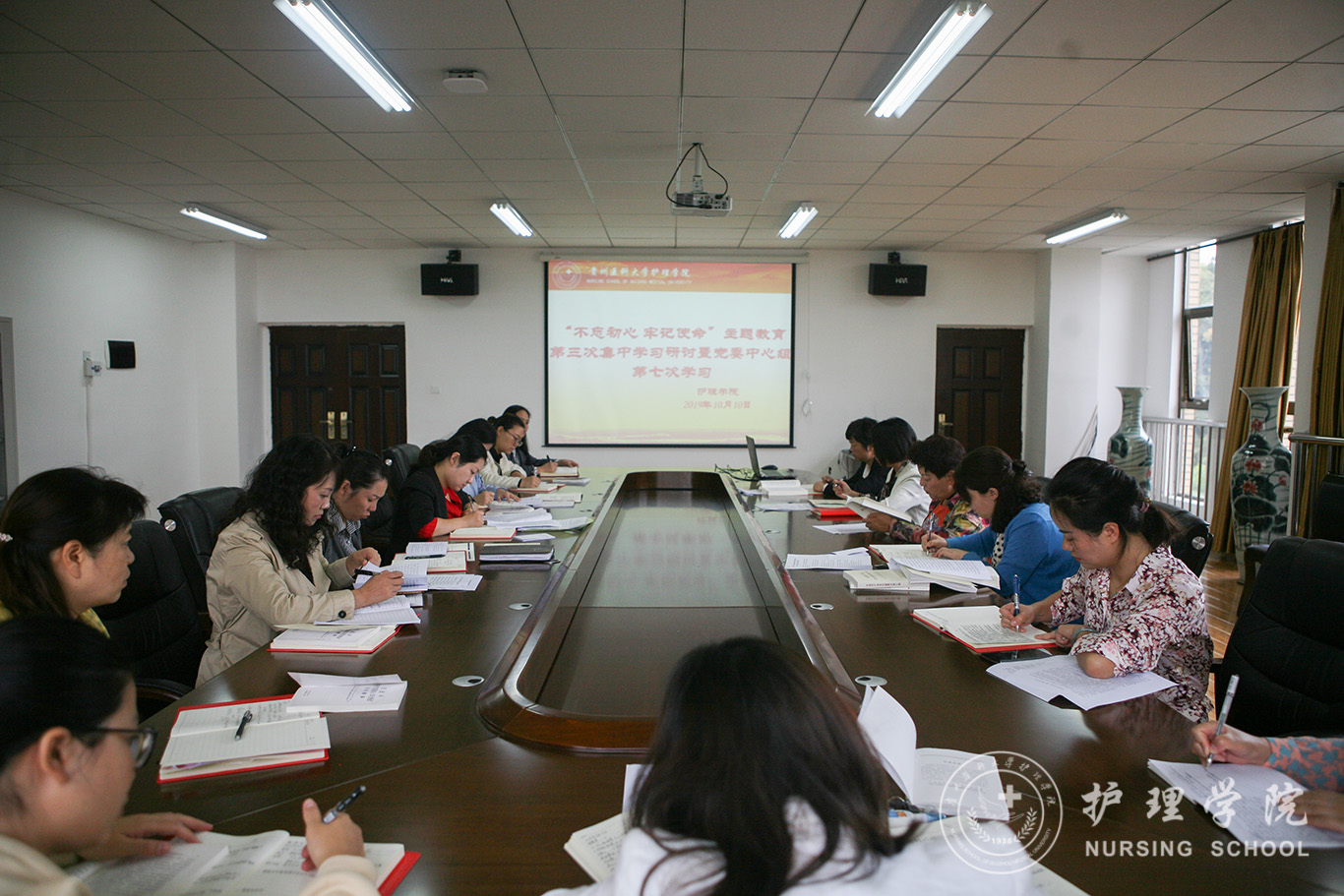 10月10日,yl7703永利集团在南校区百川楼五楼会议室召开了“不忘初心、牢记使命”主题教育第三次集中学习暨党委中心组第七次学习。会议由公司党委书记杨英主持,副科级以上干部、教研室负责人参加了学习。
