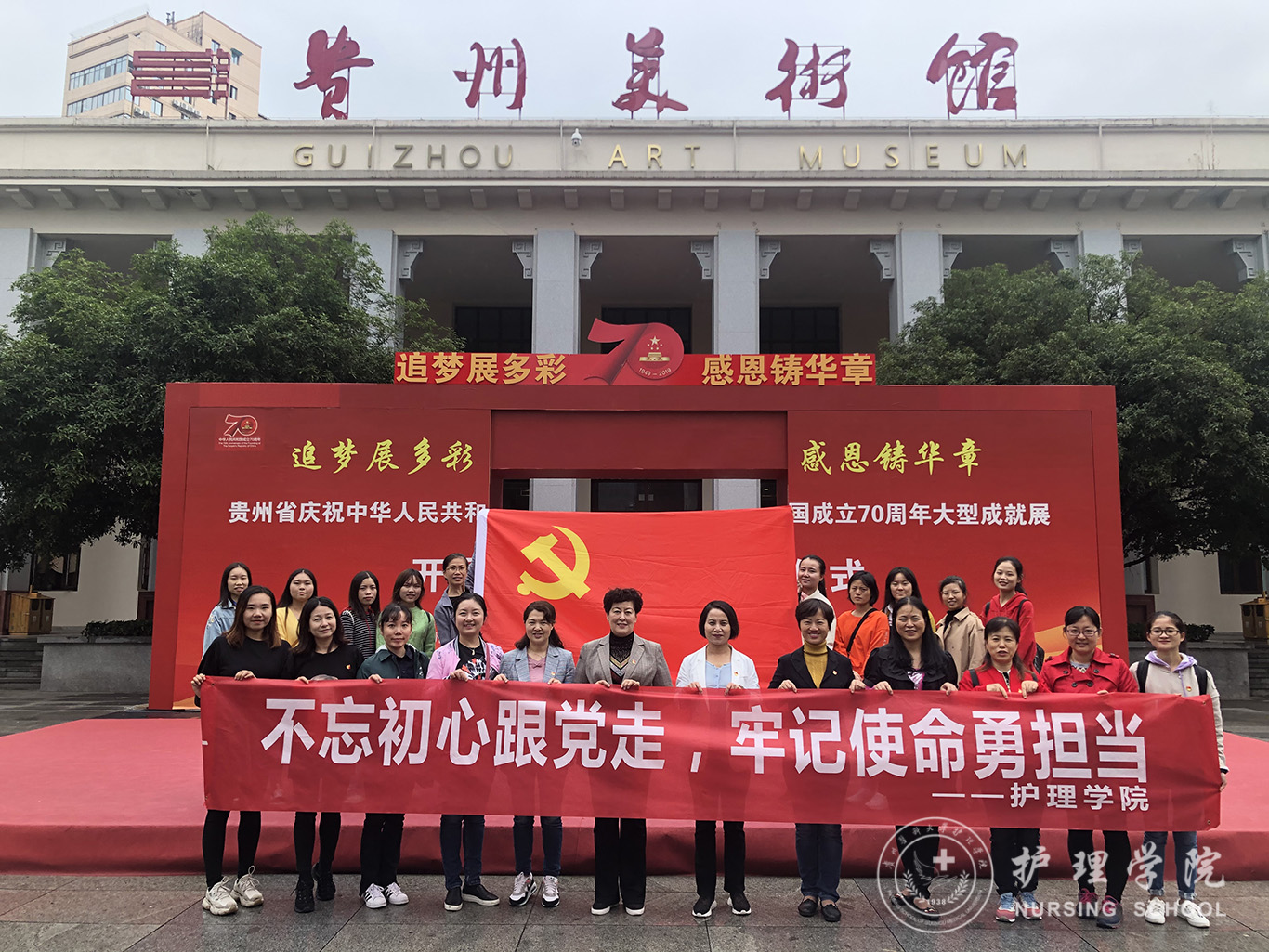 为深入学习习近平新时代中国特色社会主义思想和党的十九大精神,扎实开展“不忘初心、牢记使命”主题教育,进一步激励党员教职员工生锐意进取、砥砺前行,培育爱国主义精神。10月12日,公司领导班子组织全院教师、员工党员代表,前往贵州美术馆参观“贵州省庆祝中华人民共和国成立70周年大型成就展”。