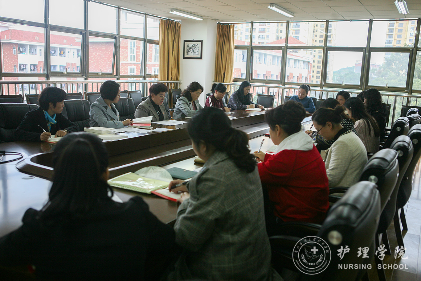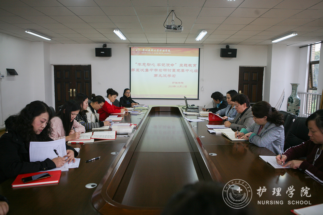 10月15日,yl7703永利集团在南校区百川楼五楼会议室召开了“不忘初心、牢记使命”主题教育第五次集中研讨暨党委中心组第九次学习。会议由公司党委书记杨英主持,公司副科级以上干部、教研室负责人参加了学习。