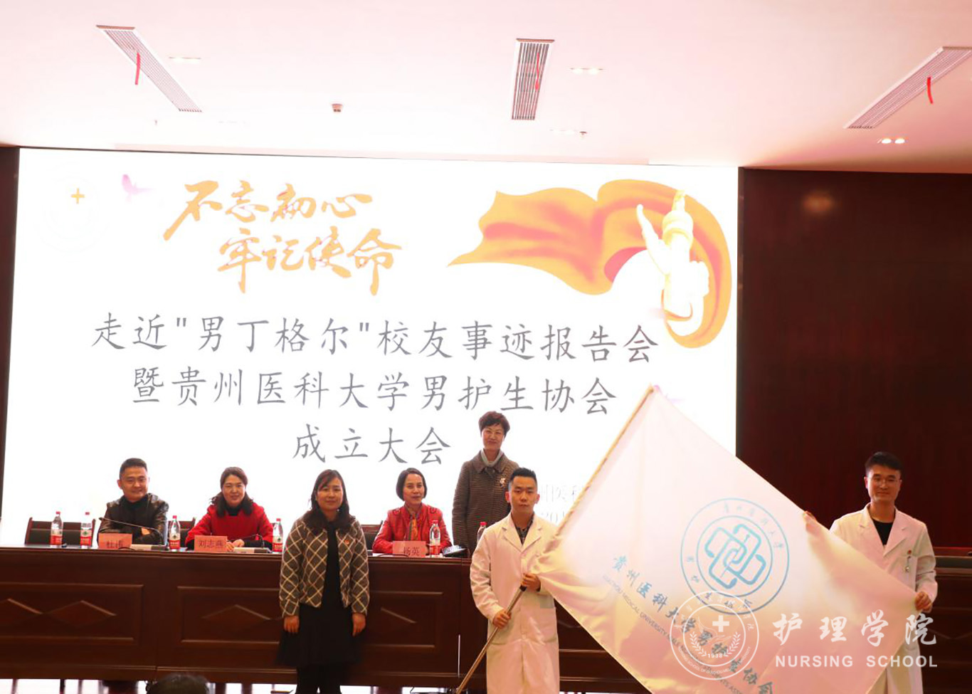 为进一步提升男护生的专业认知和学习兴趣,为男护生提供一个更广阔的学习交流和提升的平台,更好地帮助同学们做好职业生涯规划、坚定专业思想,并以此平台展示贵医男护生形象,让社会更多地了解男护生、了解护理,真正实现“无性别差异的护理”。yl7703永利集团于2019年12月17日下午在南校区道德讲堂召开“不忘初心、牢记使命”走进“男”丁格尔员工事迹报告会暨yl7703永利男护生协会成立大会。校团委副书记(正处级)桂晓玲、公司党委书记杨英、党委副书记王秀红、副经理刘志燕、员工贵州省人民医院急诊留观输液中心护士长杜伟、yl7703永利集团教师、男护生协会成员及各班员工代表参加大会,大会由王秀红主持。