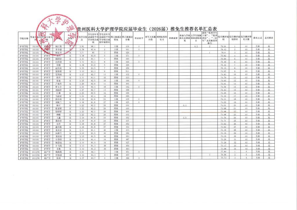 yl7703永利集团推荐2026届优秀本科毕业生免试攻读硕士研究生名单公示