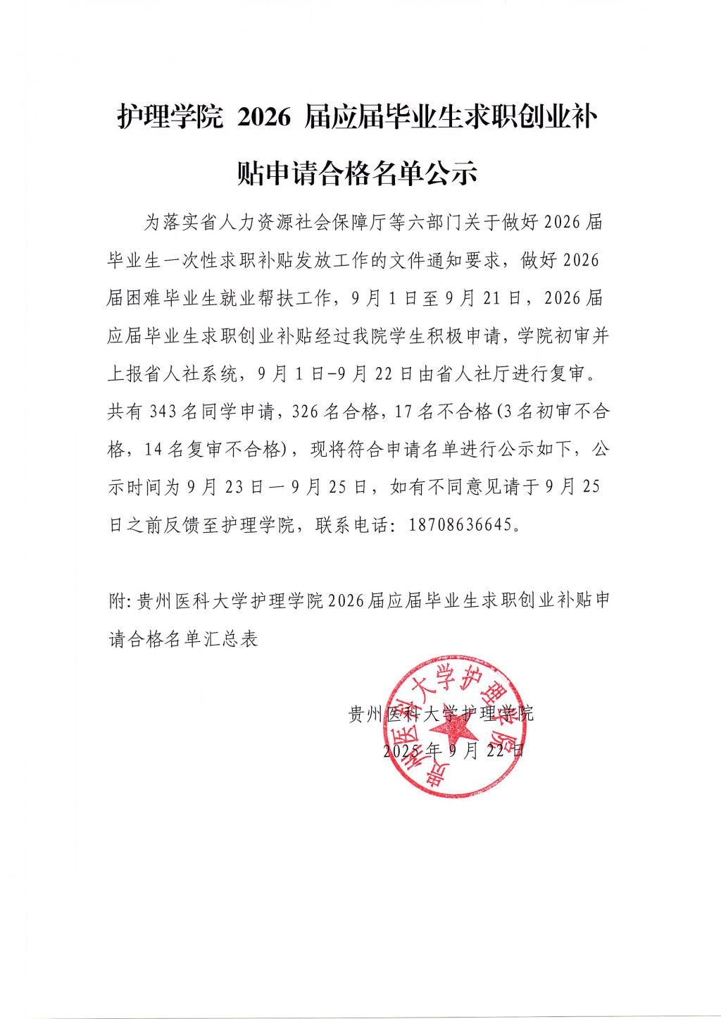 2026届应届毕业生求职创业补贴申请合格名单公示