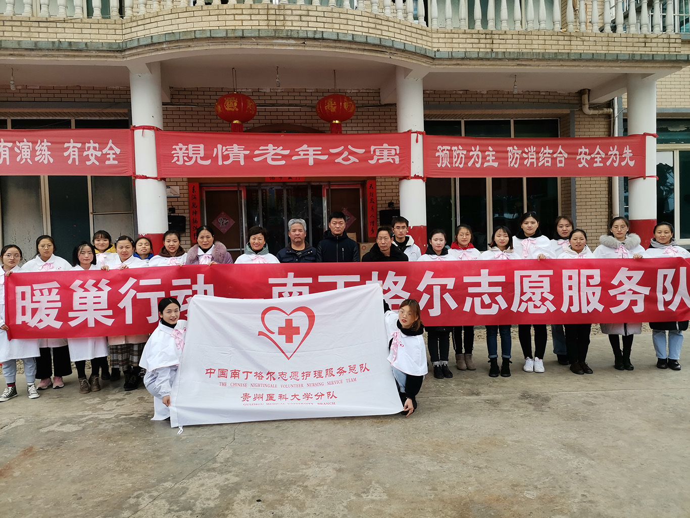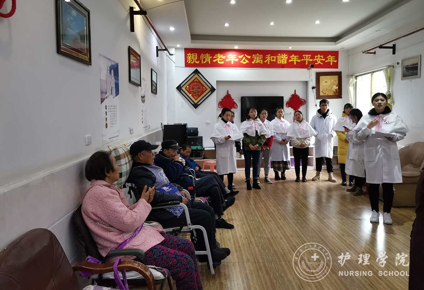 为继承和发扬南丁格尔仁道博爱、无私奉献的精神,11月30日上午,yl7703永利集团南丁格尔志愿服务队yl7703永利分队、贵州红十字护理志愿服务队组织志愿者一行20人,前往贵阳市花溪区亲情老年公寓开展了以“暖巢”为主题的尊老敬老志愿服务活动。公司党委副书记王秀红、妇儿科护理学教研室副主任刘林敏、yl7703永利护理技能协会部分成员、yl7703永利集团研究生、本科生代表参加了此次活动。