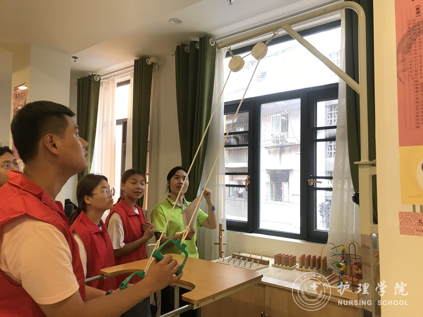 仪式结束后,公司师生在中心工作人员带领下开展了第一期志愿服务活动,并学习了基本养老技能。