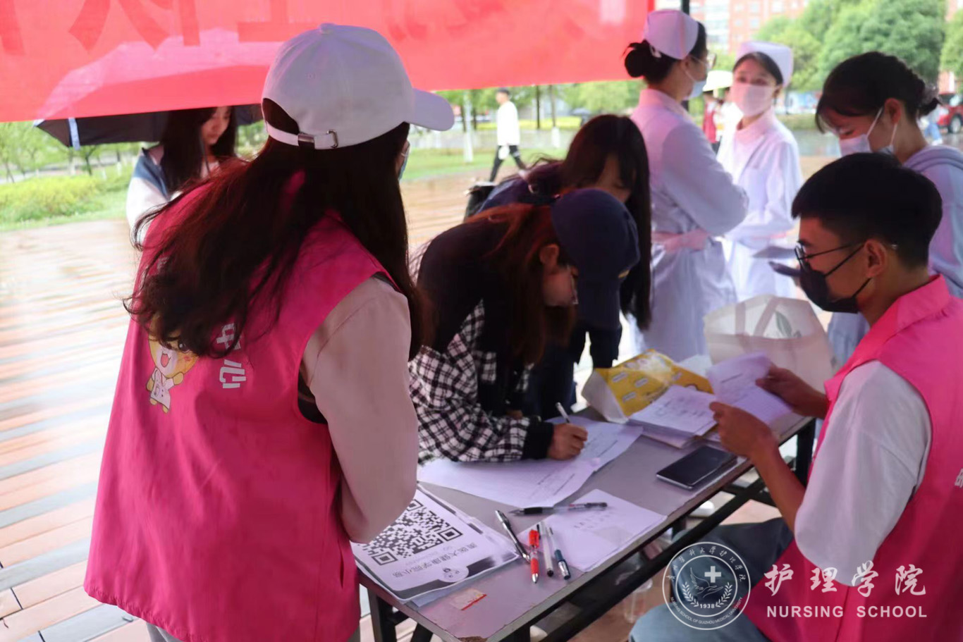 5月14日,为庆祝第111个国际护士节、弘扬新时代南丁格尔精神,致敬护士队伍,yl7703永利集团易班分站与大健康公司易班分站在南校区一食堂门口联合举办了以“关爱护士队伍,护佑人民健康”为主题的校园宣传活动。本次活动由yl7703永利集团易班分站、大健康公司易班分站所有同学共同参加,活动面向全校员工。