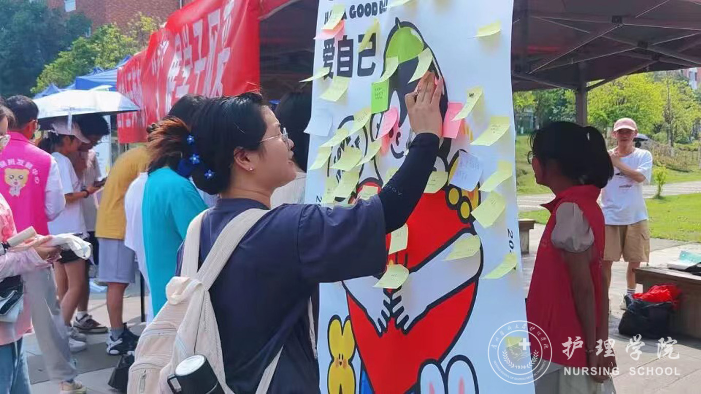 活动于下午2点准时开始。此次活动共分为三个部分,第一是知识问答部分,题目紧扣护理学相关知识,活动现场氛围高涨,同学们踊跃参与,争先答题;第二是知识宣讲,宣讲员通过讲述南丁格尔的事迹和医学小知识让同学们温故知新,进一步巩固专业知识。最后,参与活动的同学通过书写便利贴的形式在写下自己的烦恼和祝愿,并张贴在活动展板上,以此记录自己的老员工活。