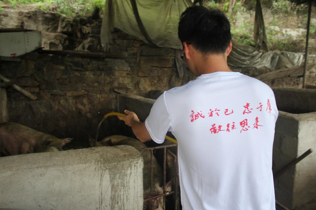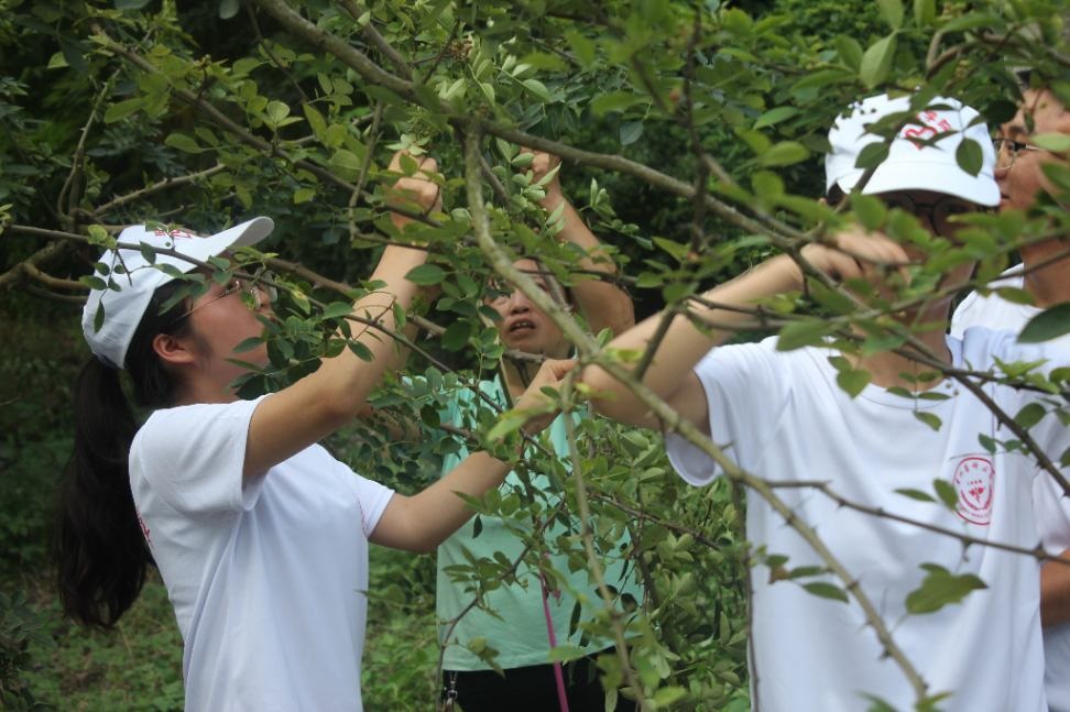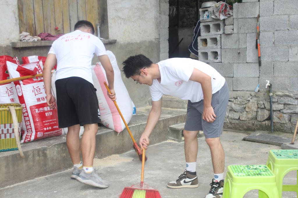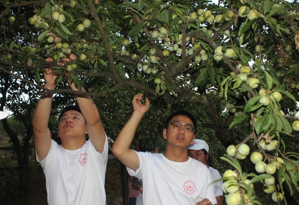 农活体验:队员们走入田间地头,帮助花椒种植户采摘花椒,帮助李子种植户进行李子的采摘、搬运,帮助养殖场清洁猪圈,喂水添猪食。