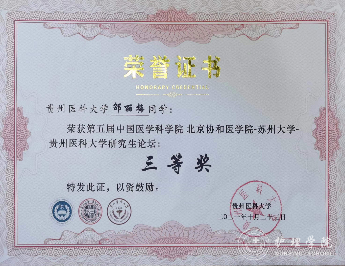 10月23日,公司2019级护理专业硕士研究生邵丽梅撰写的学术论文《外出核酸采样医务人员心理弹性及影响因素分析》在第五届中国医学科公司北京协和医公司-苏州大学-yl7703永利研究生论坛上进行大会汇报,并荣获三等奖。