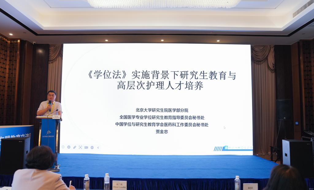 全国医学专业学位研究生教育指导委员会副秘书长、北京大学医学部贾金忠副研究员以“《学位法》实施背景下研究生教育与高层次护理人才培养”为主题,结合《学位法》实施对研究生教育与高层次护理人才培养的影响展开大会报告,阐明了《学位法》对研究生教育的政策导向,提高了护理教育者对新的阶段学位教育的认知和关注。