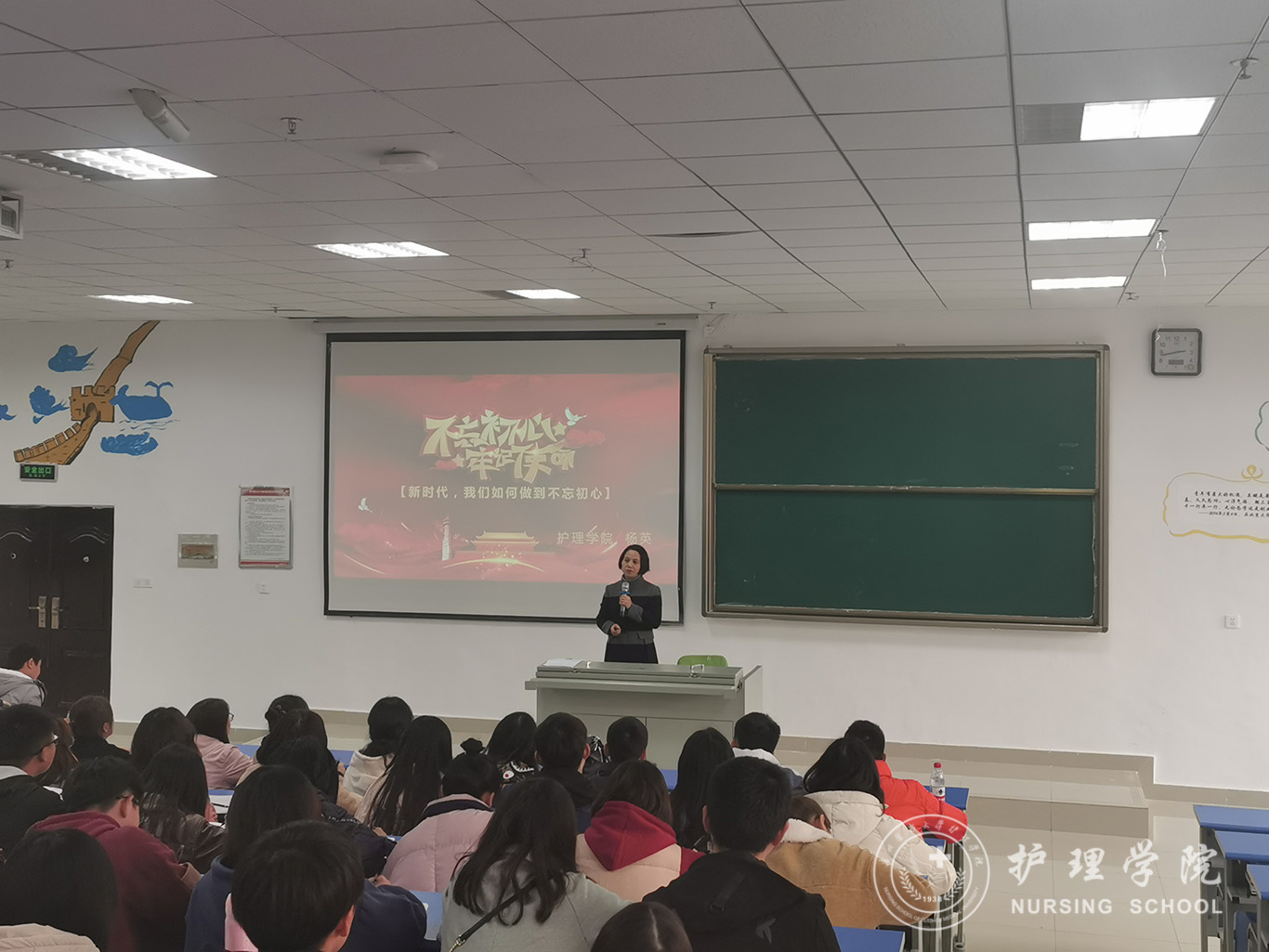 随着庄严神圣的国歌声响起,全体起立,开班典礼正式拉开帷幕。2019级护理丙班代晶晶作为学员代表发言,她表示会积极参加各项培训活动,严格遵守纪律,在党校认真学习党的理论和党的相关知识,积极向党组织靠拢。杨英作动员讲话她要求全体学员在上党课期间要做到不迟到,不早退,认真学习贯彻党的十九大精神。杨英强调遵守纪律的重要性,作为入党积极分子应努力学习党的方针政策,加强党的理论知识的学习,发扬严于律己、吃苦耐劳的精神,并提出了三点要求:一是希望同学们志存高远,坚定永远跟党走。二是希望同学们认真学习,提升素养。三是端正入党动机,树立正确三观,牢记中国共产党的初心和使命,为共产主义事业奋斗终身的殷切希望。曾敏做会议总结,指出此次党校集中培训有利于同学们明确入党目的,端正入党动机,增强“四个意识”,坚定“四个自信”,做到“两个维护”,坚决从思想上先入党。她希望通过此次党课的学习同学们可以成为讲政治、有信念、讲规矩、有纪律、讲道德、有品行、讲奉献、有作为的共产主义事业可靠的接班人,为光荣加入党组织奠定坚实基础。本次培训班持续两周,由专题课,分组讨论,社会实践观看专题教育片,集中讨论等环节组成。
