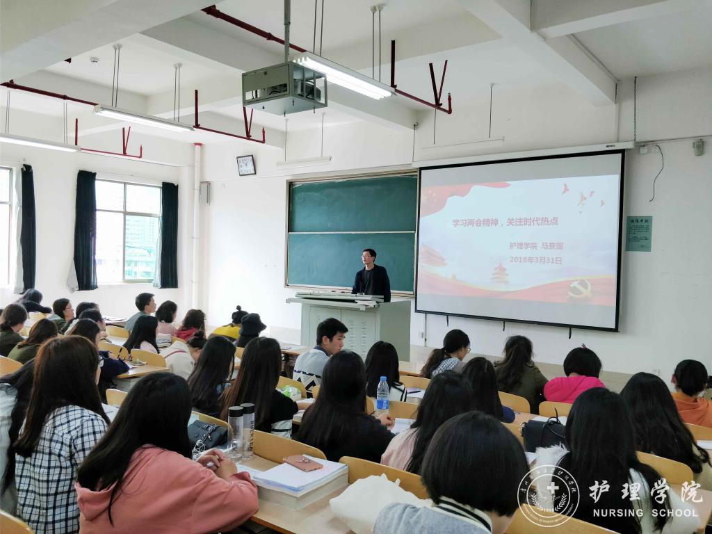 首先,马景瑶为党员同志讲解两会的基本信息与重要意义,“2018年既是全面贯彻党的十九大精神的开局之年,也是改革开放四十周年,还是决胜全面建成小康社会、实施“十三五”规划承上启下的关键一年,因此今年的两会具有非凡的意义”。他强调,党员同学在学习贯彻两会精神的同时,要坚持牢固树立“四个意识”,即大局意识、核心意识、看齐意识、政治意识;要坚持学习指导思想,努力做到融会贯通;要认真学习新宪法,积极同违宪行为作斗争。