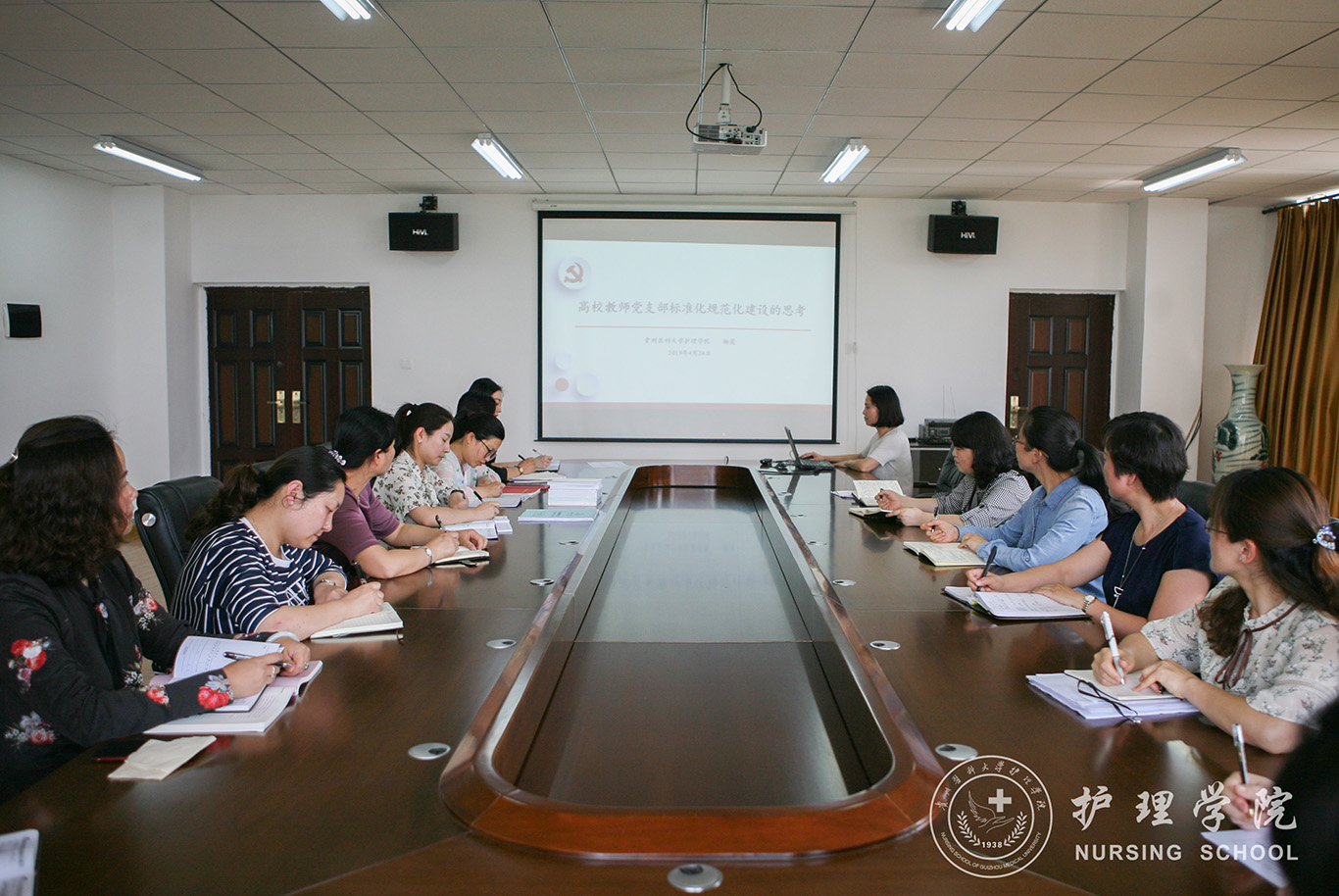 公司党委书记杨英同志以《高校教师党支部标准化规范化建设的思考》为题,为支部党员讲述了一堂精彩的党课。杨英结合支部建设的新标准新要求,从“实施党支部标准化规范化建设的背景、党支部工作存在的主要问题及原因、解决问题的方法路径”三个方面为大家进行了讲授。
