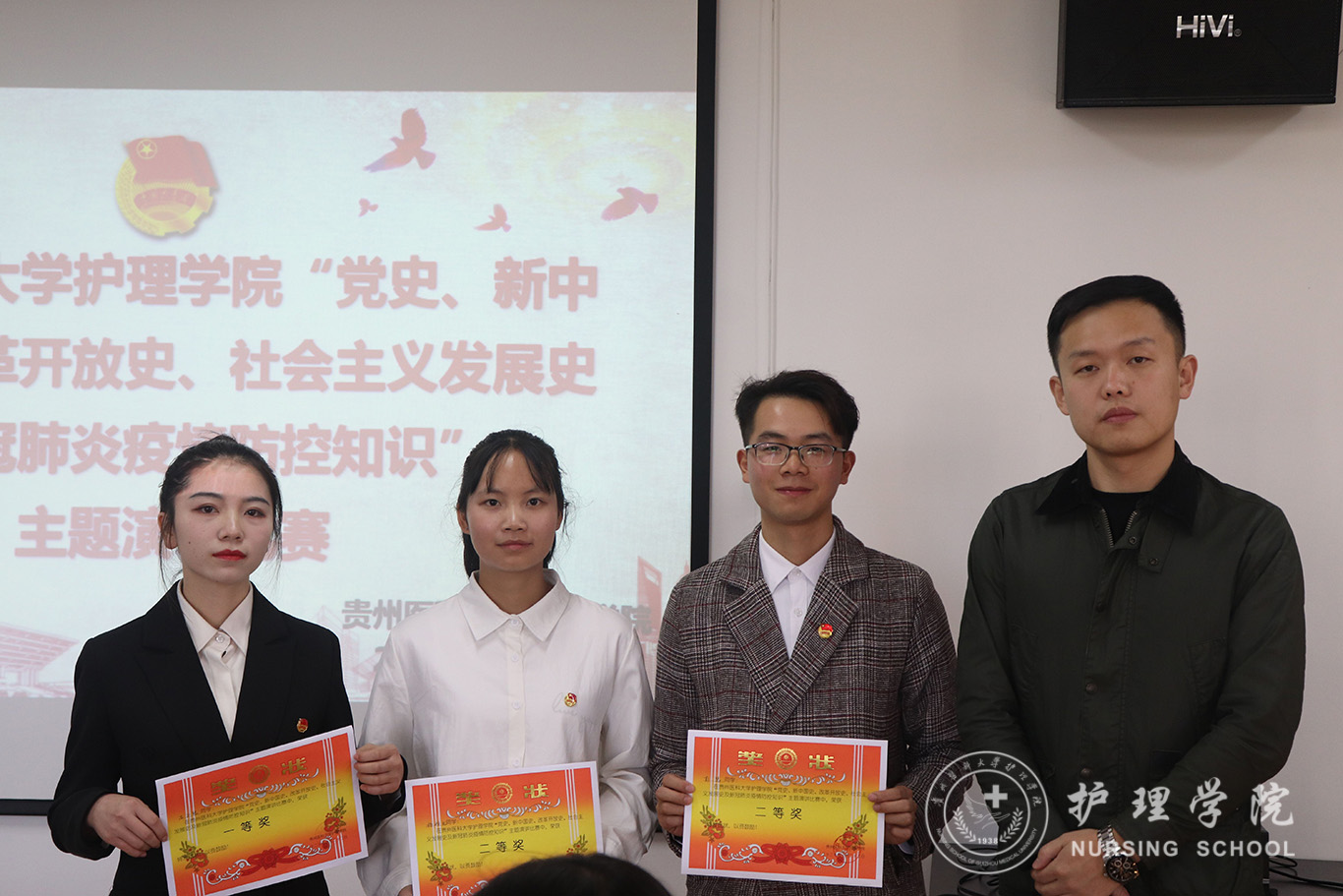 10月20日,经过一轮紧张刺激的初赛选拔后,入围决赛的七位选手展开了激烈的角逐,他们意气风发,用铿锵感人的演讲,引领着师生回到了“南湖航船”之上、建国初故宫的城楼之中、南方讲话的会场之内以及医务人员抗击新冠肺炎的一线战斗中,同学们的演讲内容振奋人心,思想感情起伏跌宕,雄浑的背景音与此起彼伏的掌声一次次点燃了大家的爱国情怀。改革开放以来的中国特色社会主义来之不易、党领导人民取得抗疫斗争重大战略成果更是可歌可泣,这一桩桩一件件在饱含激情的演讲声中重现。此次演讲比赛还有一位特殊的选手,她就是参与了援鄂抗疫的护理学研究生蔡小华,她以自身经历向我们剖析了自身对“四史”的理解和对驰援武汉的亲身感悟,在历时一个多小时的精彩演讲后,最终角逐落下帷幕,2019级护理学甲班石正琴荣获一等奖;2020级助产班彭慧、2018级护理学甲班杨胜礼荣获二等奖;2020级护理学研究生蔡小华、2019级护理学乙班黎政燕、2020级助产班唐梦碟、2020级护理学E班曾陈浩荣获三等奖。