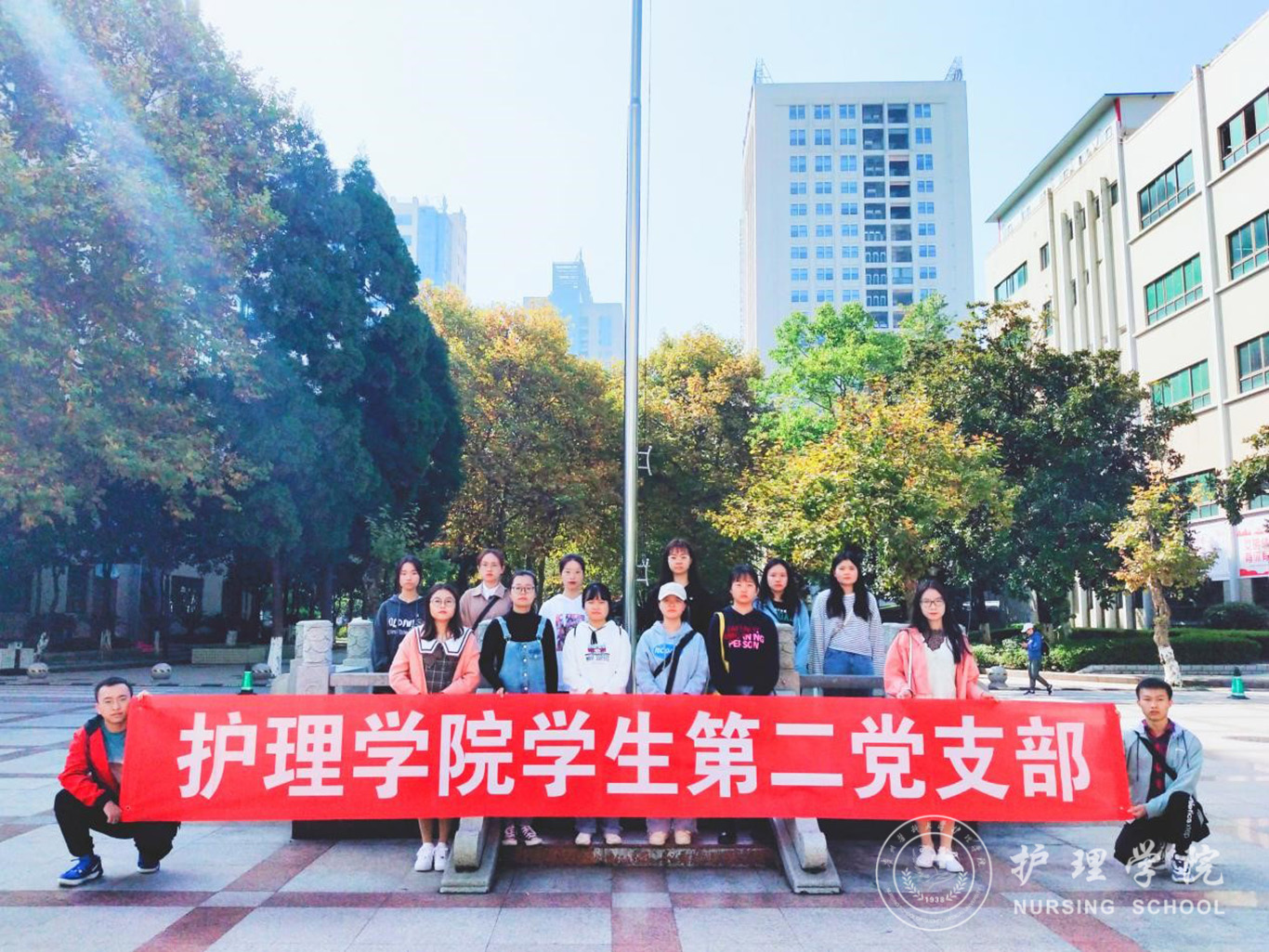 志愿服务暖人心,文明之花处处开。上午十点,员工第二党支部支部委员徐亚兰组织全体党员志愿者在旗杆处集合,然后分小组在校园内进行志愿服务。为营造美丽、文明、和谐的校园环境,党员志愿者们纷纷行动起来,有的打扫干净每一寸路面,让果皮纸屑无处躲藏;有的擦干净每一根栏杆,让灰尘泥土不见踪影;有的细心呵护每一块绿地,让校园披上绿色的衣裳;有的擦净每一块宣传栏,让校园文化更加深入人心,直到校园变得美丽整洁,志愿者们才结束了此次活动。
