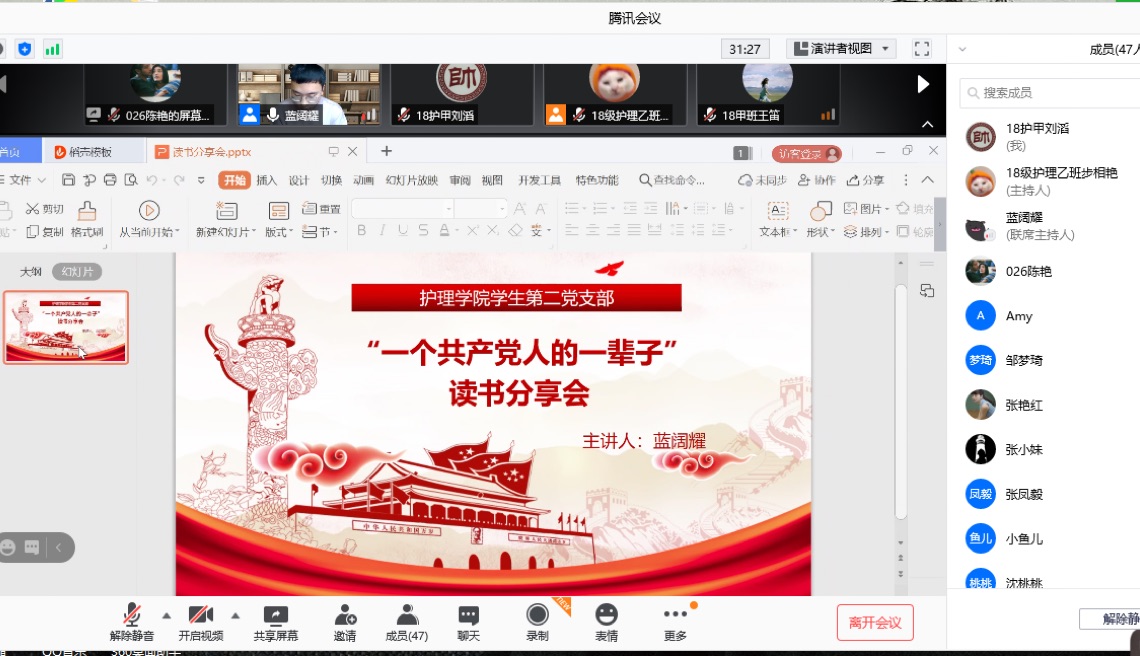 1月18日,yl7703永利集团员工第二党支部为丰富“不忘初心、牢记使命”主题教育学习形式,全力推进队伍文化建设,提高党员文化素养,营造崇尚学习的浓厚氛围,组织党员同学通过腾讯会议开展线上“一个共产党人的一辈子”主题党日活动,本次活动由员工第二党支部书记李杏春主持。
