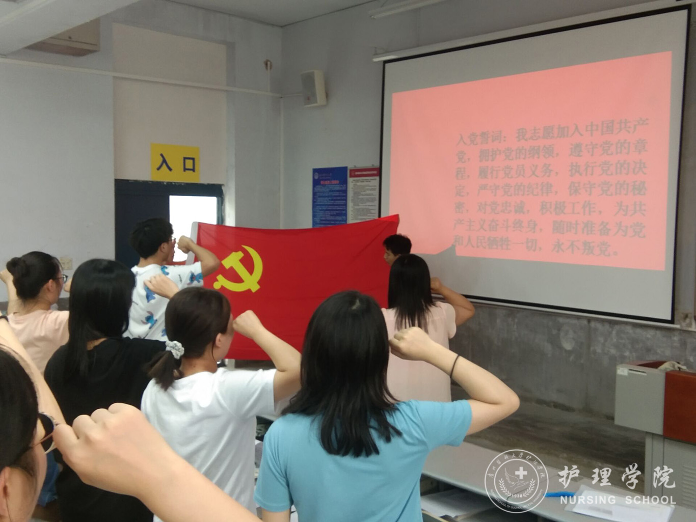 最后,李杏春带领全体党员重温入党誓词,全体党员肃立,用铿锵有力的声音再次面对鲜红的党旗,宣读出誓词,重忆入党初心,引导党员继续加强四史学习,勇于担当作为,进一步坚定信仰信念,永葆政治本色,以更加饱满的热情发挥共产党员的先锋模范带头作用。