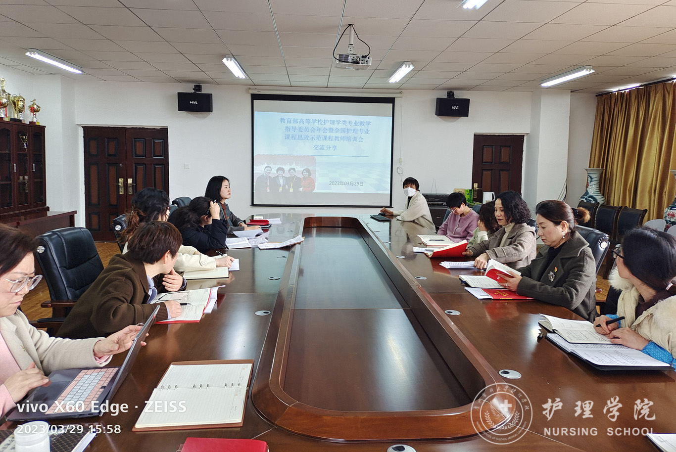 本次活动由刘志燕、晏家芳、刘林敏三位老师分享了赴南京参加“教育部高等公司护理学类专业教学指导委员会年会暨全国护理专业课程思政示范课程教师培训会”的感悟。三位老师从不同角度为大家介绍了培训会内容,并结合公司发展实际讲述了自己的所思所想、所感所悟。参会党员纷纷围绕思政课建设这一主题展开了讨论,并表示此次学习分享会收获颇丰、催人奋进。