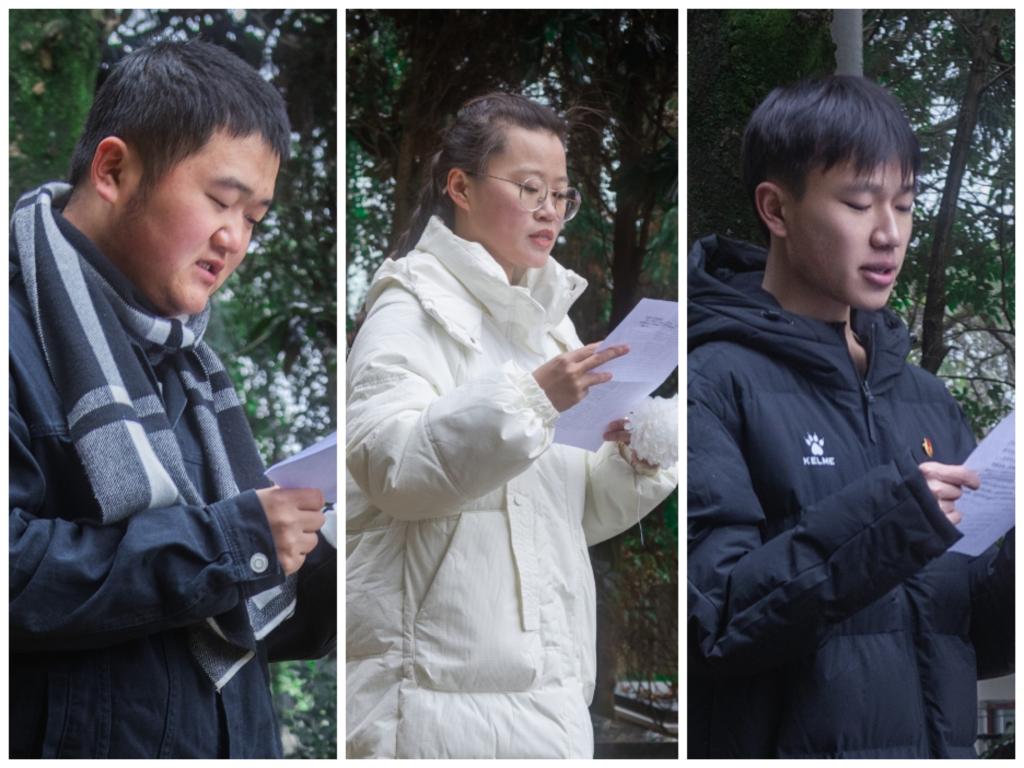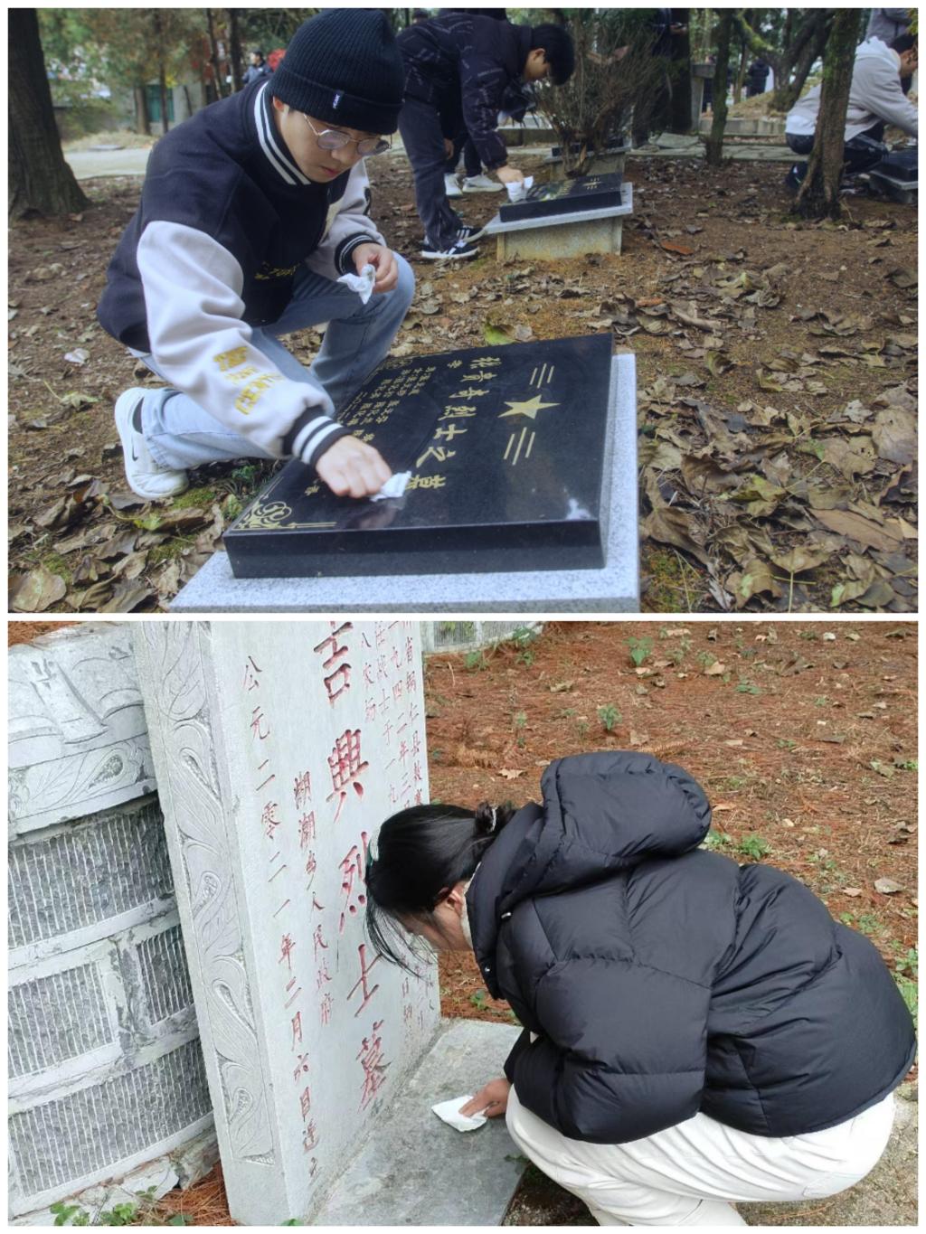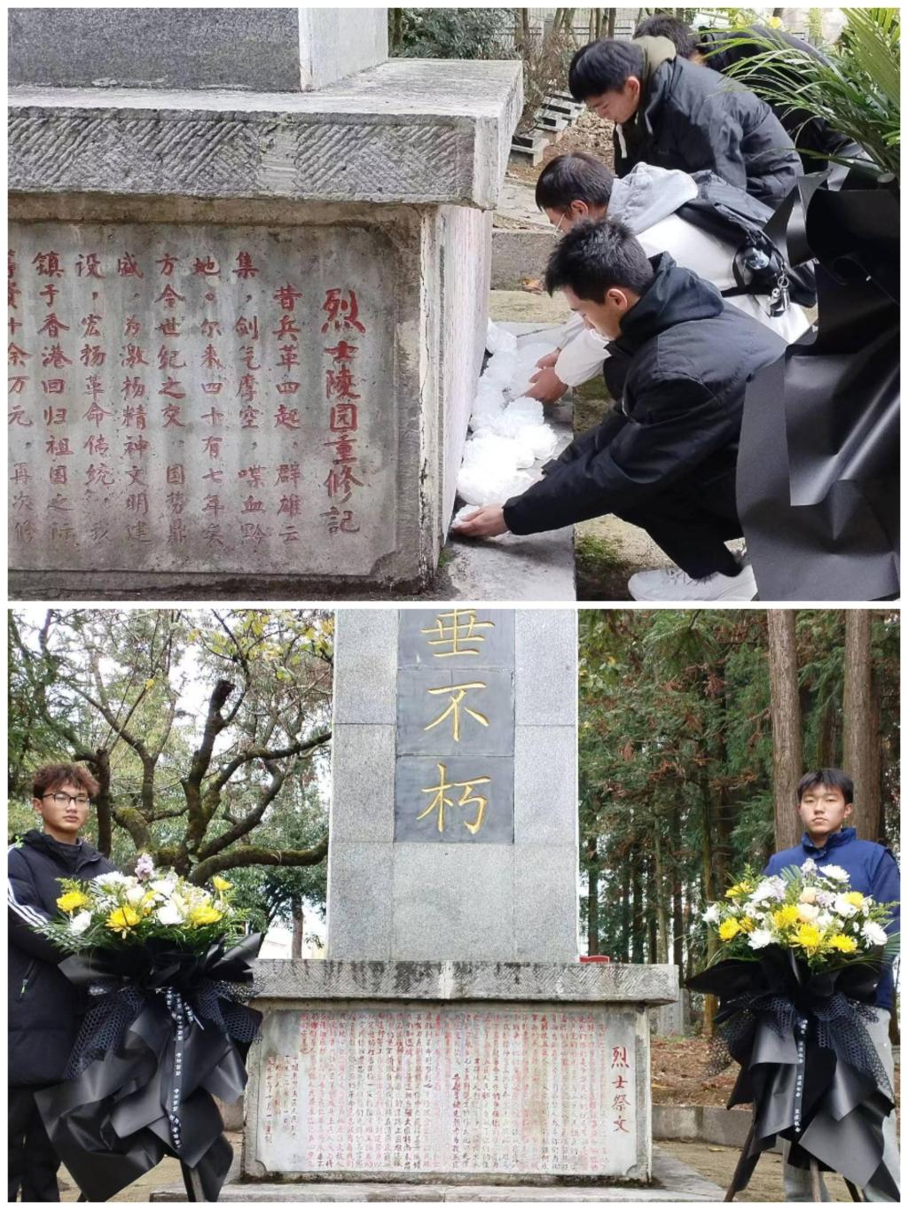 首先,刘文壮组织在场人员进行集体默哀,共同缅怀南京大屠杀遇难同胞和为抗战胜利牺牲的革命先烈,号召全体同学铭记历史、珍爱和平。随后,员工代表付知行带领大家回顾了南京大屠杀这段沉痛的历史,讲解了中华民族抗日战争的艰难历程以及“国家公祭日”设立的意义及背景;杨显芳、付知行、杨烨锋三位员工代表对此次活动的感想进行了交流,用青年的朴实话语表达对遇难同胞和革命烈士的深切缅怀。到场师生在革命烈士纪念碑前进行了庄严肃穆的献花仪式,并有序瞻仰烈士陵园,为陵园内的烈士擦拭墓碑,用实际行动表达了对革命烈士的无限敬仰和悼念之情。