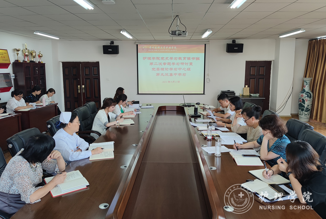 9月15日,yl7703永利集团在南校区百川楼五楼会议室开展党史学习教育读书班第二次专题学习暨党委理论学习中心组第九次集中研讨,院领导班子成员、副科级以上干部和全体辅导员参加,由公司党委书记杨英主持会议。