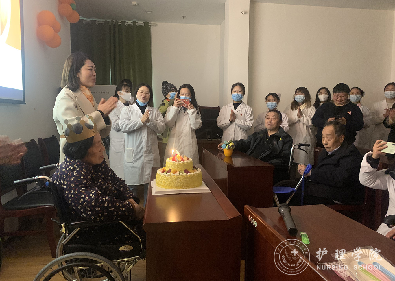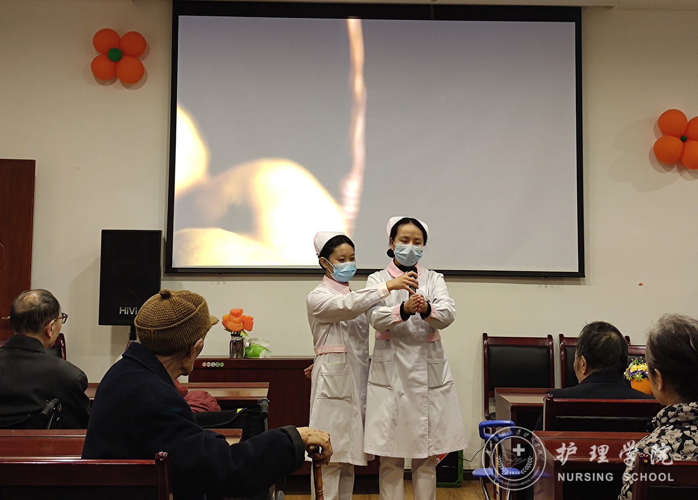 活动中,员工党员耐心细致地为老年人们科普医学知识,生动形象地演示了“七步洗手法”与“海姆立克急救法”的操作技能。同时,员工党员细心地为老年人测量血压,并对血压偏高、有高血压病史的老人给予健康提示与知识宣讲。随后,党员代表们为恰逢今天过生日的老奶奶送上了生日祝福,与她共度今日的美好时光,同时为老人们一一送上慰问品。活动最后,党员代表们聆听了在日间照料中心疗养的老党员们讲述他们的入党故事,让同学们在精神上受到了洗礼。