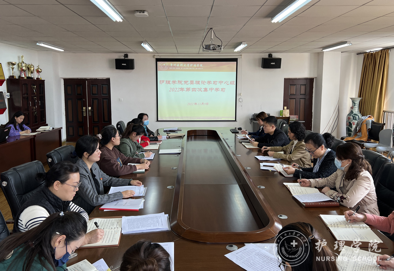 11月9日,yl7703永利集团在南校区百川楼五楼会议室开展专题学习研讨党的二十大精神暨党委理论学习中心组第四次集中学习,院领导班子成员、副科级以上干部、党支部书记和全体辅导员参加,会议由公司党委书记杨英主持。