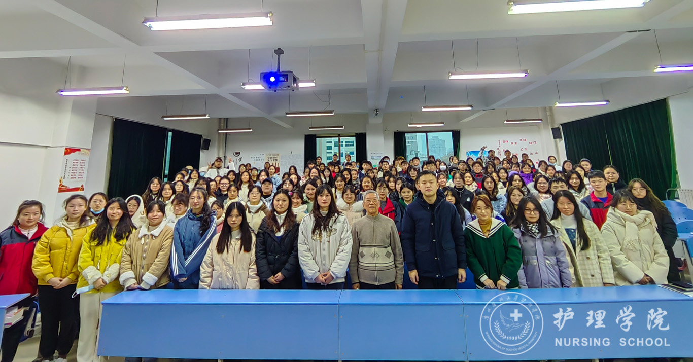 李金生指出,作为新时代青年学子,必须牢记习近平总书记嘱托,面对“世界之变、时代之变、历史之变”,广大青年更要牢记嘱托,坚定理想信念,筑牢精神之基,厚植爱国情怀,矢志不渝跟党走,不负时代,不负韶华,不负党和人民的殷切期望。将个人发展和国家前途命运结合起来,做强国有我的奋斗者,把使命转化为行动,把个人追求融入现代化建设伟大事业中。把人生理想融入民族复兴伟大梦想,让青春在拼搏中出彩,在奋斗中闪光。作为新时代医学人才,也是中华民族伟大复兴和健康中国战略的坚强力量,要继承和发扬南丁格尔精神,把握时代机遇,刻苦学习、勤练本领,争做担当民族复兴大任的时代新人。