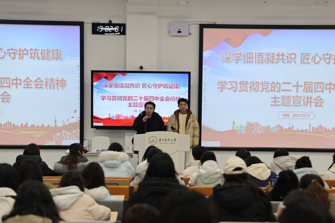 在宣讲中,他们结合了“健康中国”、“健康贵州”建设部署与人口老龄化等时代趋势,生动解读了党的二十届四中全会精神与护理专业的紧密关联,阐述了智慧护理、人文关怀等行业发展方向,为新生明晰了职业前景,并给予成长建议,帮助新生将个人理想融入到国家健康事业发展中去。